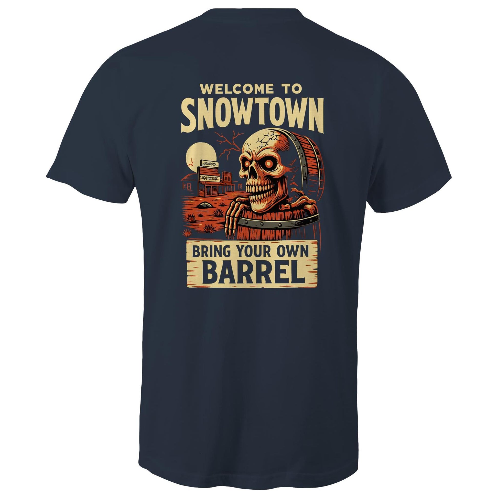 The Snowtown Men’s T-Shirt is part of Dingo Country’s horror-themed line, blending Australia’s grimmest true crime with black comedy so dark it needs a torch. Featuring a bold back print inspired by the Snowtown “bodies in barrels” case, this tee doesn’t shy away from taboo. It’s not for the faint-hearted — it’s for those who like their fashion morbid, with a side of satire.