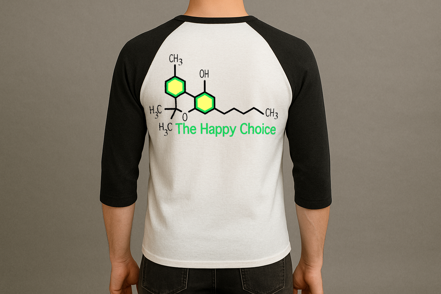 The 'The Happy Choice' Raglan 3/4 Sleeve T-Shirt is for the thinkers, the dreamers, and the conversation starters. With a discreet 'Made in Dingo Country' logo on the front and the scientific structure of THC on the back, this shirt combines comfort with a cerebral nod to cannabis culture. Whether you're a science enthusiast or just appreciate a relaxed vibe, this tee has you covered.